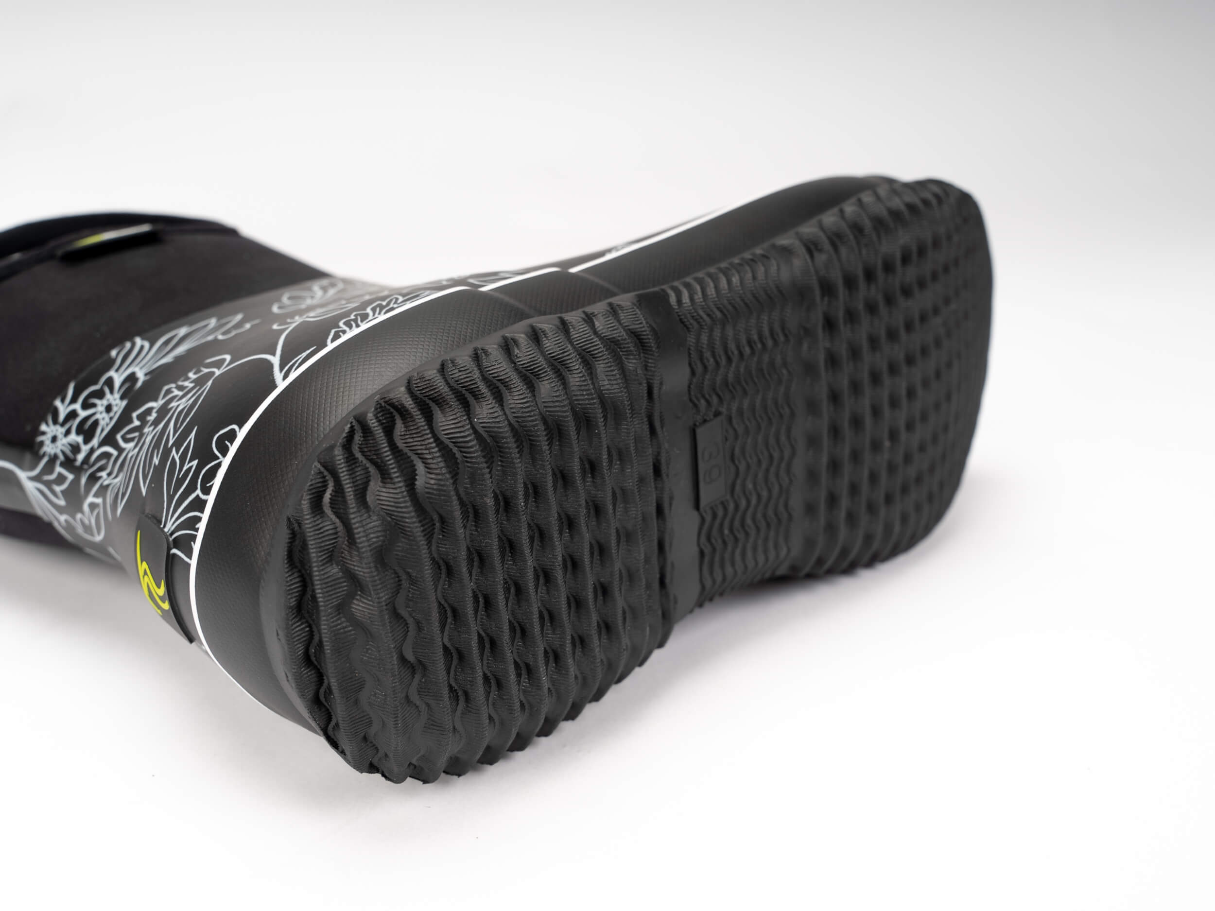 Das Spezialprofil der Sohle bietet guten Halt und ist durch seine besondere Struktur selbstreinigend.